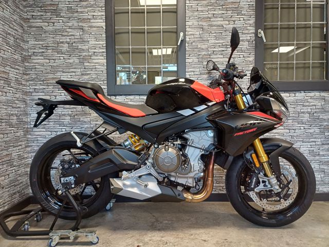 De naakte Tuono 660 volgt hetzelfde spoor als z’n gekuipte RS 660 broer, met Euro5+ gehomologeerd blok, iets meer vermogen en ook hier uiteraard een Factory versie.