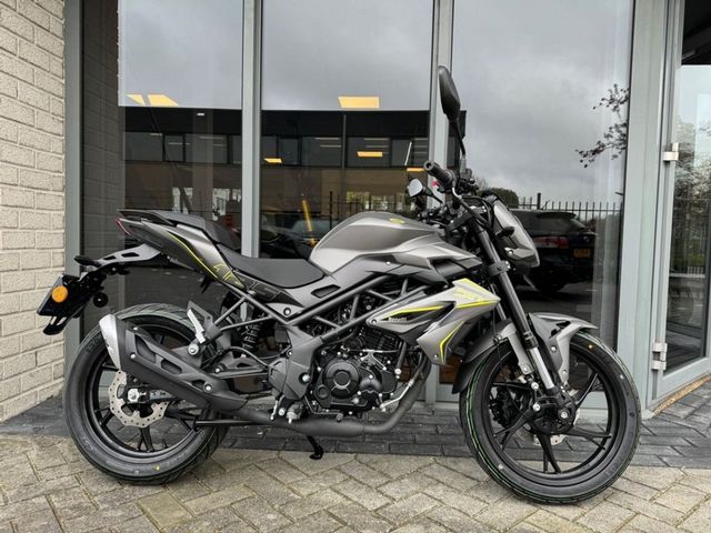 Opties en Accessoires: 5 versnellingen, 36 maanden garantie, 125cc singel cylinder 11pk motor, A2 motorfiets, Benzine capaciteit 14l, Beschikbaar in grijs, zwart, groen & wit, Cbs combined braking system, Droog gewicht 142 kg, Gratis allrisk dekking voor 10 dagen, Gratis bezorging door heel nederland!, Inklapbare voetsteunen, Luchtgekoeld motor