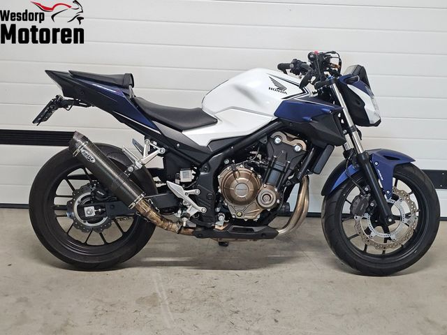 Deze CB 500 F is in zeer nette staat. Van de eerste eigenaar, goed en periodiek onderhouden met volledige historie (boekje met stempels en facturen aanwezig). De motor is uitgevoerd in wit/blauw/zwart kleurstelling en voorzien van mooie upgrades zoals een Shark uitlaatdemper (prachtig geluid), digitaal TFT scherm, LED knipperlichten en korte kentekenplaathouder. Nieuwe banden en ketting gemonteerd. A2 geschikt (35KW). Altijd binnen gestald.